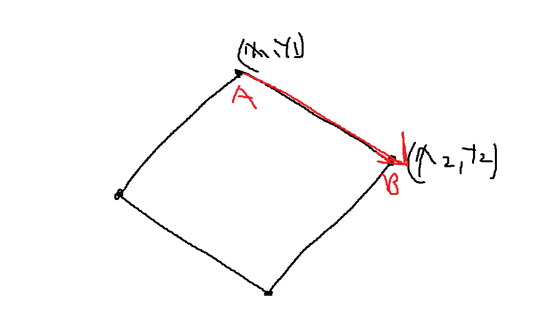 정사각형 성질을 이용하면.. 임의의 두 점 A(x1,y1), B(x2,y2)을 먼저 잡고 벡터 AB를 구한다