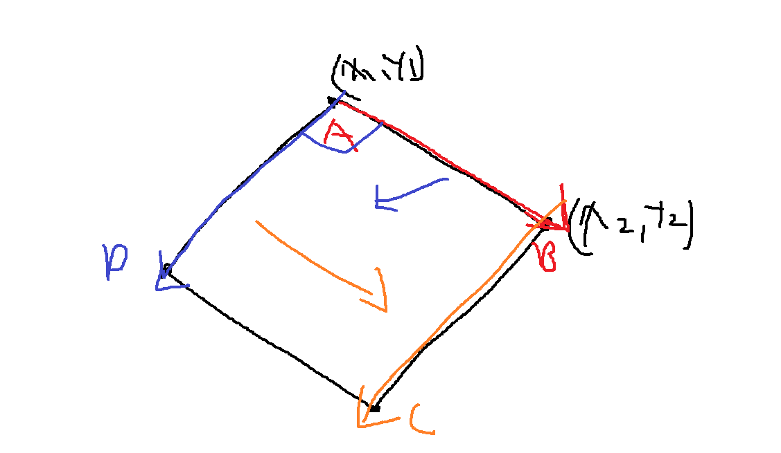 (x,y) >> (-y,x)로 되므로 벡터 AD = (-y2+y1, x2-x1)이 된다