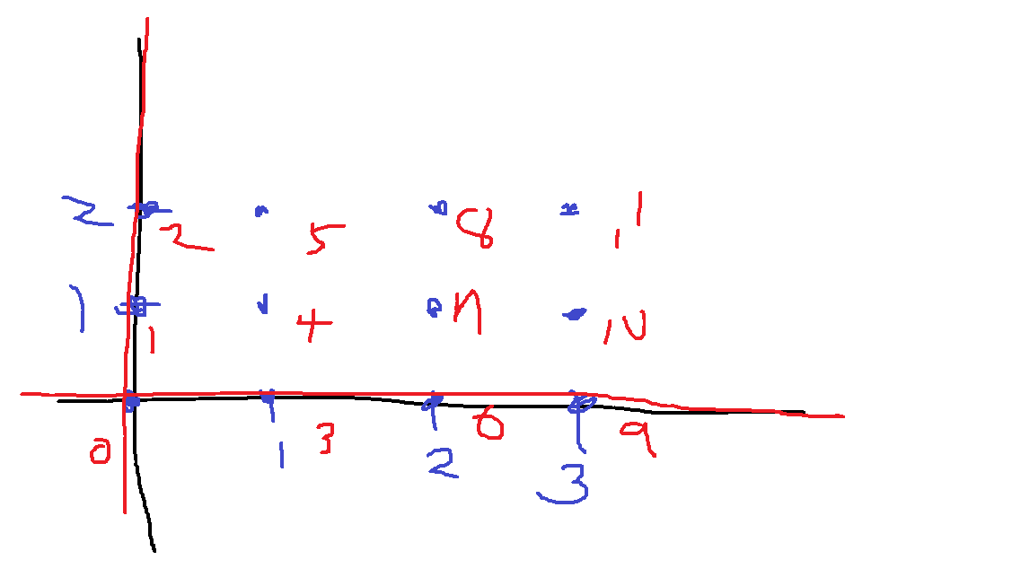 그래서 0번 점을 먼저 기준으로 수평선 혹은 수직선을 그어보고, 그어지지 않은 점을 하나 잡아서,