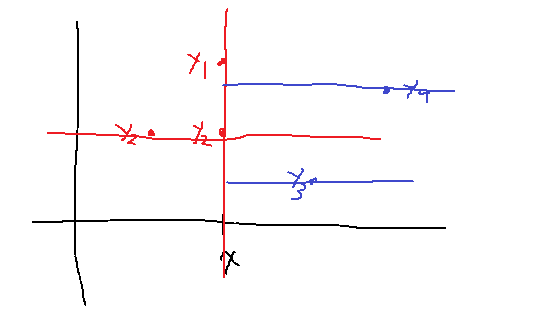 실제로는 y3,y4도 존재하고 그쪽으로는 반드시 수평선을 그어야하므로 실제로는 4개 필요함