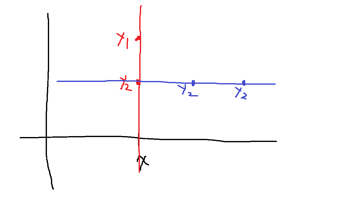 다음과 같은 경우 X[x]에는 y1,y2가 들어있는데... y2가 2개니까 수평선으로 하나만 그어서
