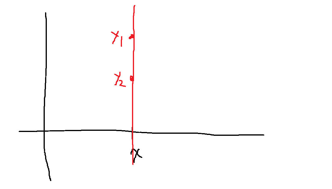 그러면 어떤 X = x좌표를 기준으로 수직선을 그어보면, 해당하는 y좌표들을 알 수 있다