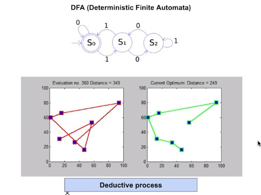 왼쪽에서 path를 고려하여 길이가 가장 짧은 최적인 path가 나오면 오른쪽에 update하여 최종 결론이 나올때까지 반복하는 DFA