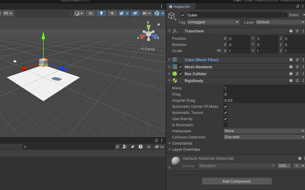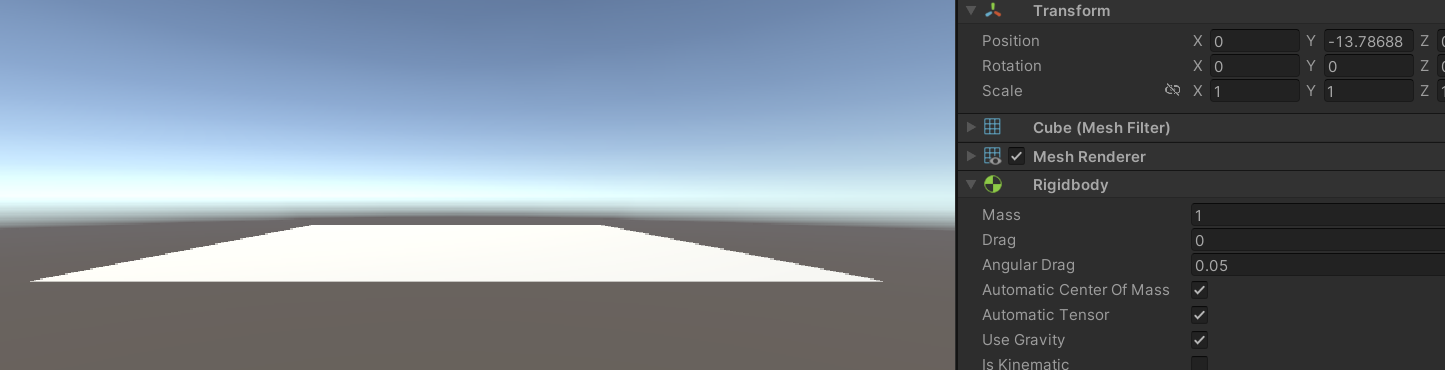 rigidbody가 있으면 공중에서 중력의 영향을 받아 떨어지게 됨