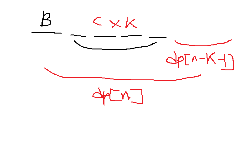 dp[n] = dp[n-1] + dp[n-k-1], n-k-1 < 0이면, dp[n] = dp[n-1] + 1