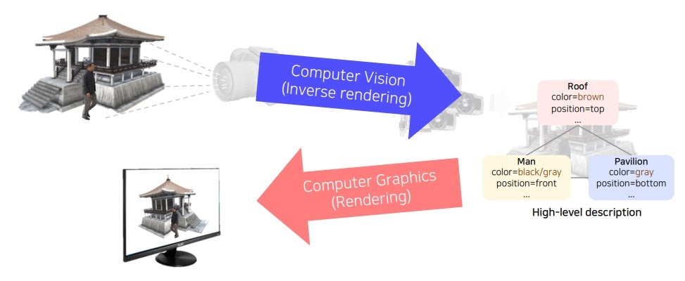 computer vision이 rendering의 반대과정이라고해서 inverse rendering이라고도 부른다