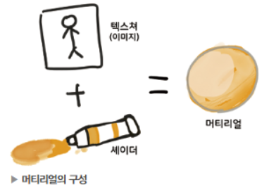 셰이더와 텍스쳐가 합쳐진 에셋으로 오브젝트의 픽셀 컬러를 결정함
