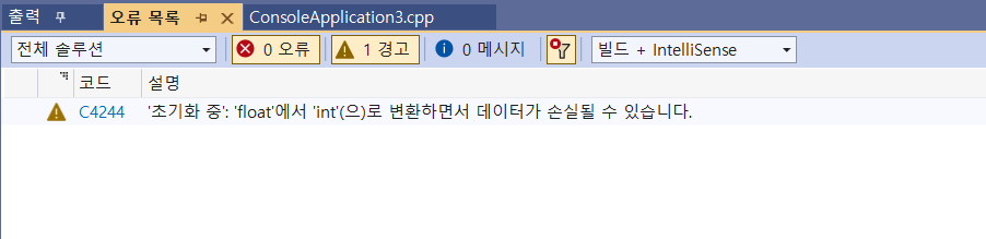 유실 가능성이 있는 경우 컴파일러가 경고 메시지를 보여준다
