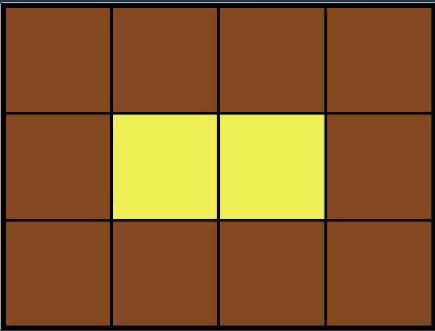 Leo는 카펫을 사러 갔다가 아래 그림과 같이 중앙에는 노란색으로 칠해져 있고 테두리 1줄은 갈색으로 칠해져 있는 격자 모양 카펫을 봤습니다. Leo는 집으로 돌아와서 아까 본 카펫의 노란색과
