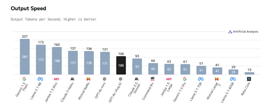 현재 LLM은 GPT-4o는 초당 106토큰, mini는 초당 131토큰, gemini flash는 207토큰