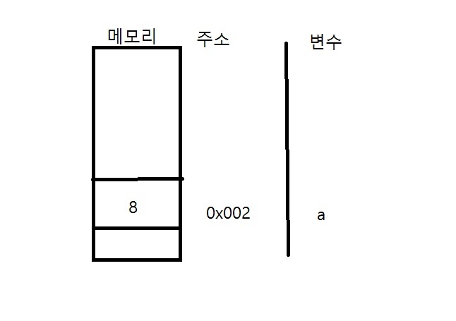 a라는 이름을 가진 메모리 주소에 8이라는 값을 할당한다