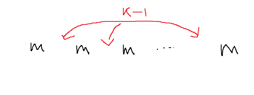 만약에 m이 k개 있다면 m과 m 사이의 공간은 k-1개
