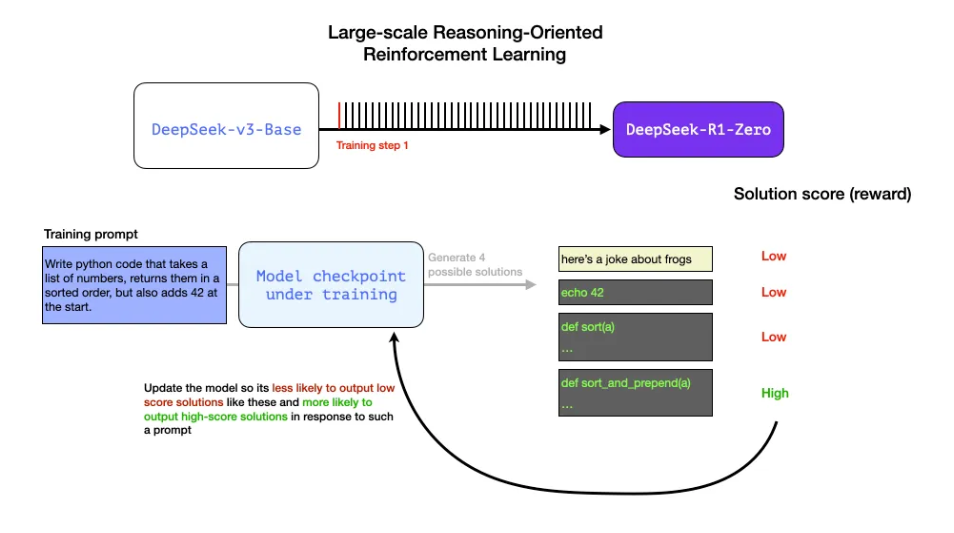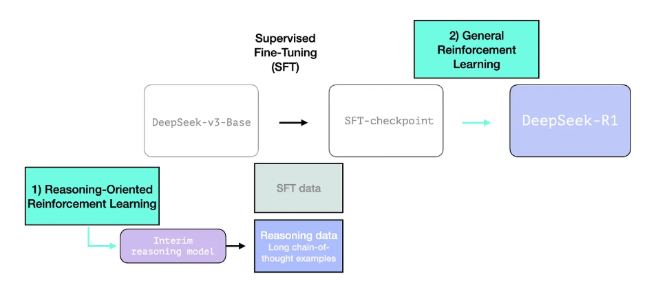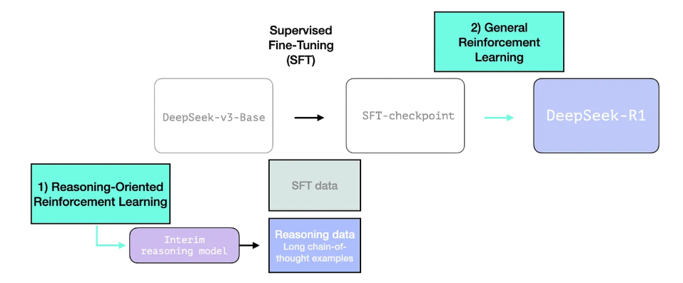 DeepSeek-R1은 앞서 설명한 일반적인 학습 과정을 따릅니다.