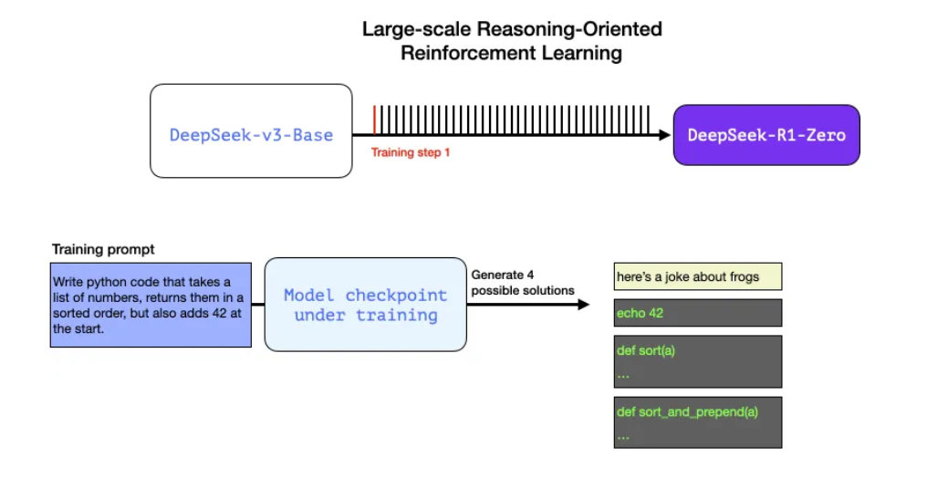 하지만 이 모델을 생성할 수 있게 만든 것은 이전 모델인 DeepSeek-R1-Zero를 생성한 실험 덕분입니다.
