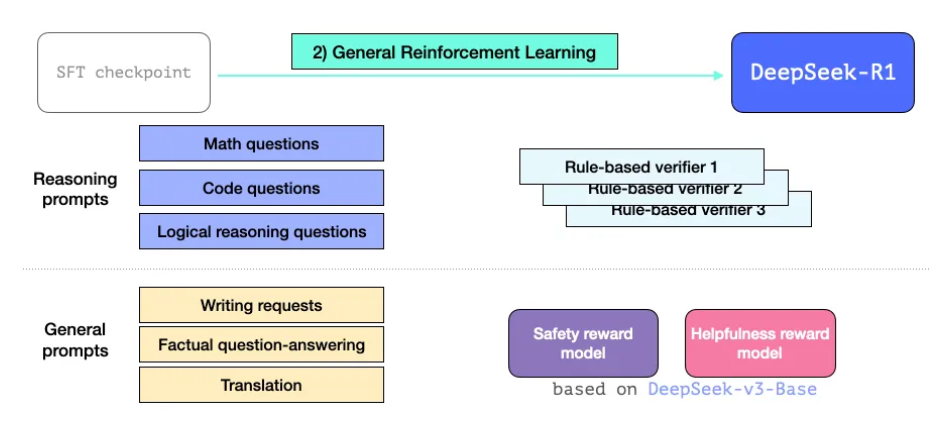 2- R1 모델을 학습시켜 추론 문제와 비추론 문제를 개선 (다른 종류의 검증자를 사용하여)