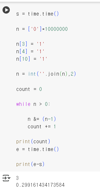 따라서 n & (n-1)을 반복적으로 연산하면 1인 비트가 모두 지워지므로, 이 반복 횟수가 1인 비트의 개수가 된다