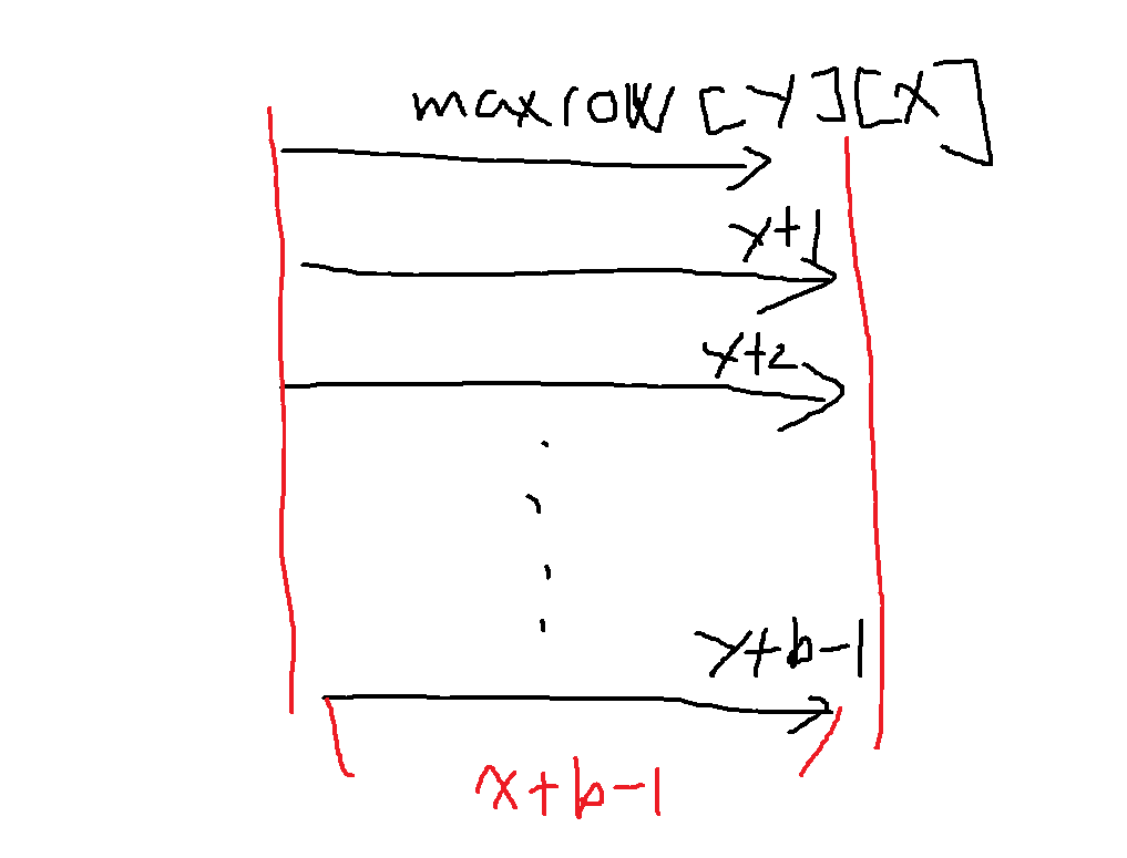 maxrow[y][x]를 행 y에 대하여, x,x+1,x+2,...x+b-1 구간에서의 최댓값