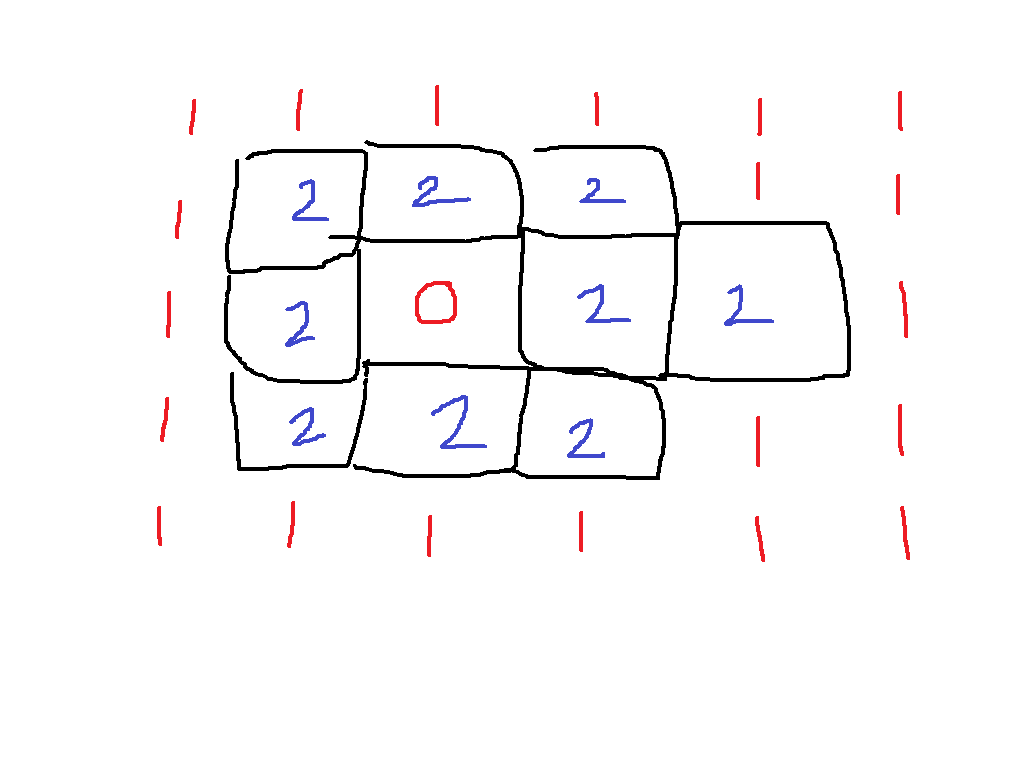 놀랍게도 2로 표시된 부분을 순회해서, 상하좌우를 탐색해가지고, 1로 표시된 부분의 개수를 세면 된다