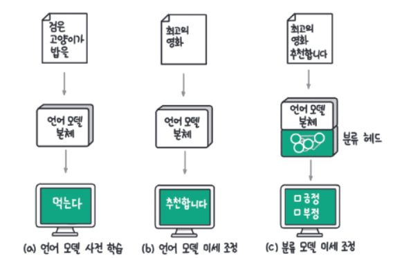 (a)와 같이 다음 단어를 예측하는 언어 모델을 사전 학습하고 나서,