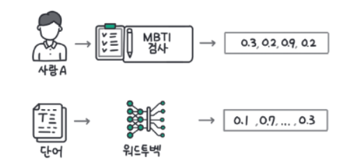 MBTI는 4개의 숫자로 표현되지만, 단어는 보통 수십~수만개 이상의 숫자로 표현된다.