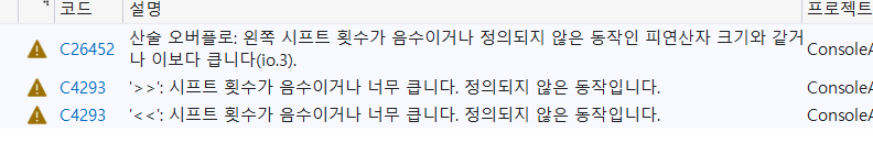 이동할 비트 수가 음수이거나 너무 크면 시프트 연산이 제대로 수행되지 않는다.