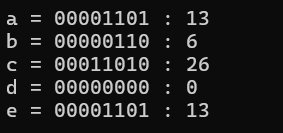 cout << "a = " << bitset<8>(a) << " : " << a << endl;