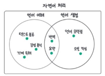 기존에는 언어에 대해 다루는 AI 분야인 자연어 처리 분야를 크게 언어를 이해하는 자연어 이해,