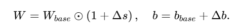 고정된 기본 필터 $W_{base}$와 기본 바이어스 $b_{base}$가 주어지면, 실제 매개변수는 다음과 같이 정의됩니다: