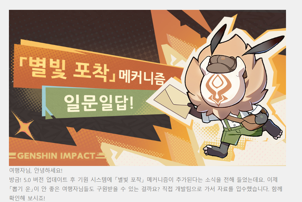 과징금 먹은 이후 5.4버전에 별빛 포착 확률을 공개하였다.