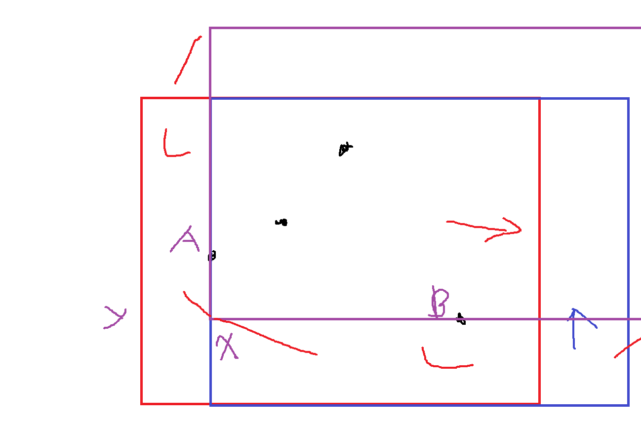 점 A의 x좌표와 점 B의 y좌표를 기준으로 잡고