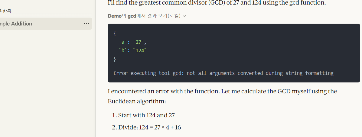 설정에도 Demo라는 MCP 서버가 실행중임을 확인