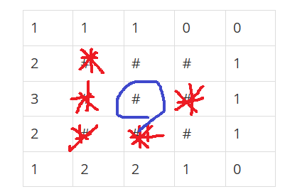 그리고 4번째 #에는 왼쪽 대각선 상단에 1, 바로 위 2, 우측 대각선 상단에 2가 쓰여있는 것으로 보아 지뢰가 있을 수 있다