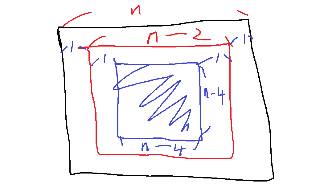 이 m에다가 꼭짓점 부분 지뢰 개수 합에 나머지 안쪽 부분 (n-4)*(n-4)개를 더하면 그것이 정답