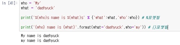{}방식은 %d나 %s를 따로 쓰지 않아도 된다는 편리함