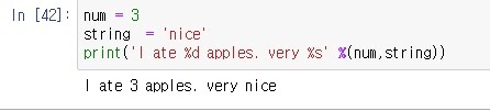 %d에 num값 3을 넣고 %s에 string값 ‘nice’를 각각 넣어 출력