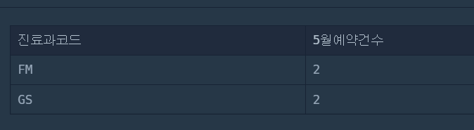 SELECT MCDP_CD AS '진료과코드',COUNT(APNT_YMD) AS '5월예약건수' FROM APPOINTMENT