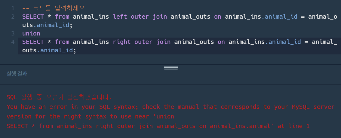 SQL 코딩테스트 보는데 당황했던 것이 LEFT OUTER JOIN, RIGHT OUTER JOIN은 되는데