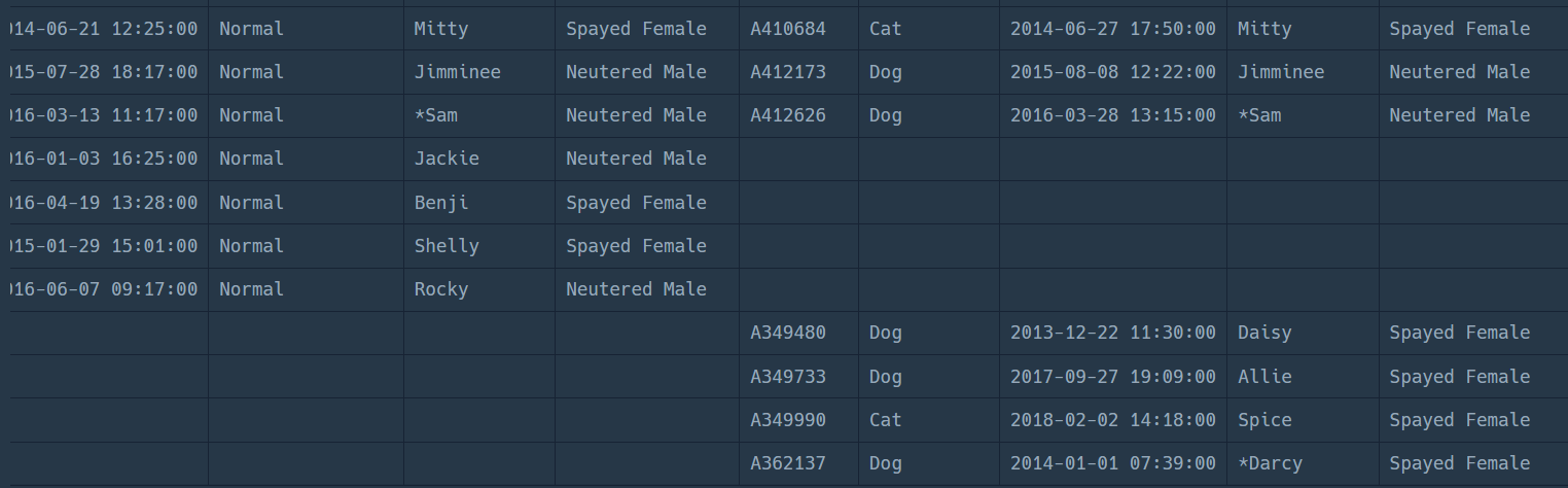 on animal_ins.animal_id = animal_outs.animal_id;