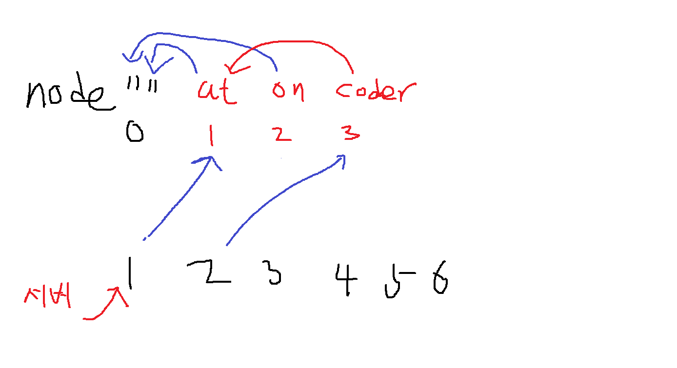 node[i]는 (p,s)로 노드번호 p가 문자열 s를 일부로 가지고 있다는 뜻