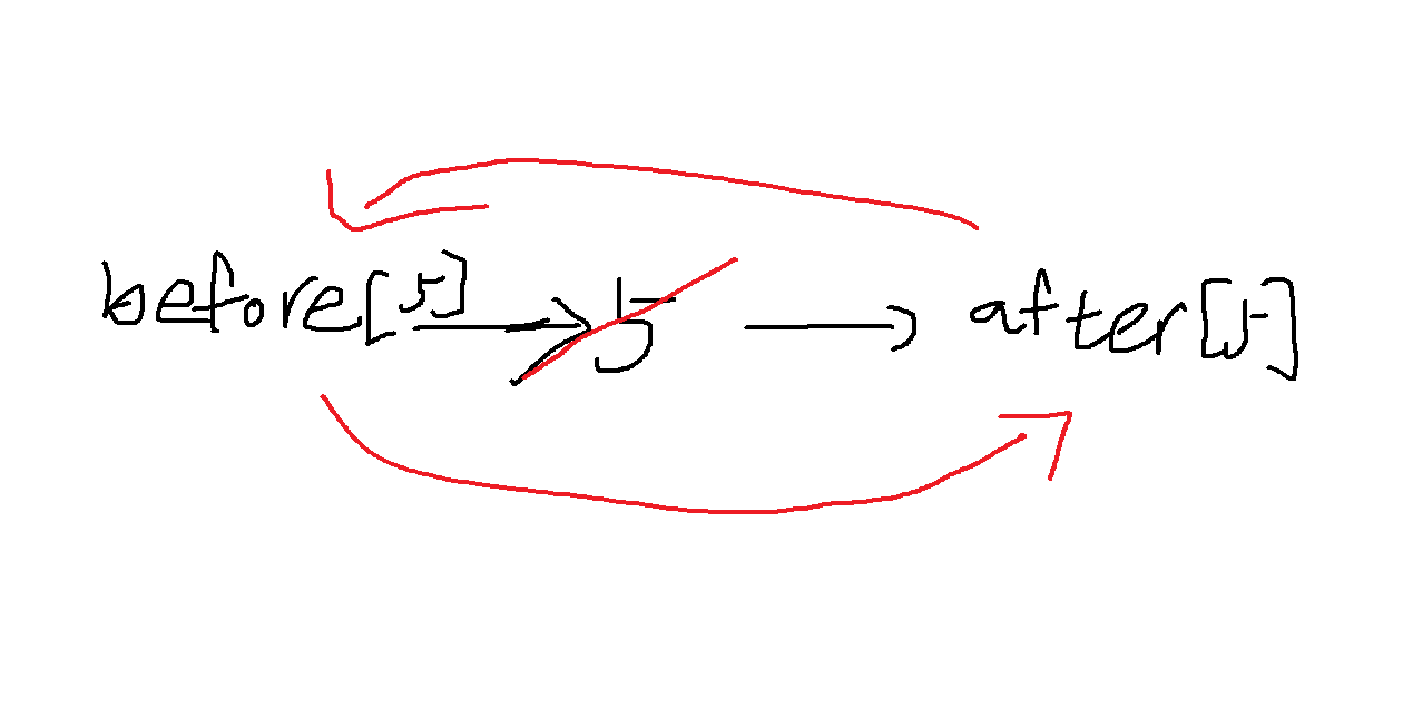 이후에 after[5] = -1, before[5] = -1로 삭제한다면 그림적으로는 이쁘긴한데 반드시 필요한게 아니라면 그럴 필요는 없긴하다