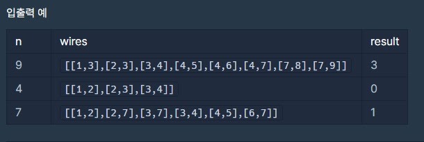 두 전력망이 가지고 있는 송전탑 개수의 차이(절댓값)를 return하도록 solution 함수를 완성해주세요