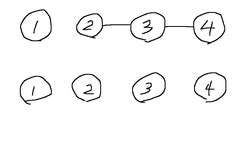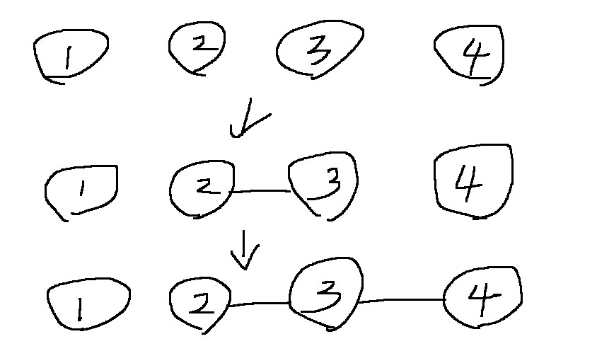 [1,2],[2,3],[3,4]에서 [1,2]를 끊은 경우 생각해보면…