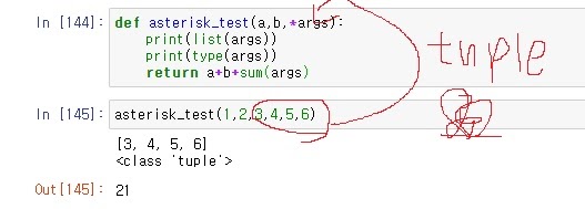 153줄은 *(2,3,4,5)로 *args에 넘길 때 2,3,4,5로 넘겨줌