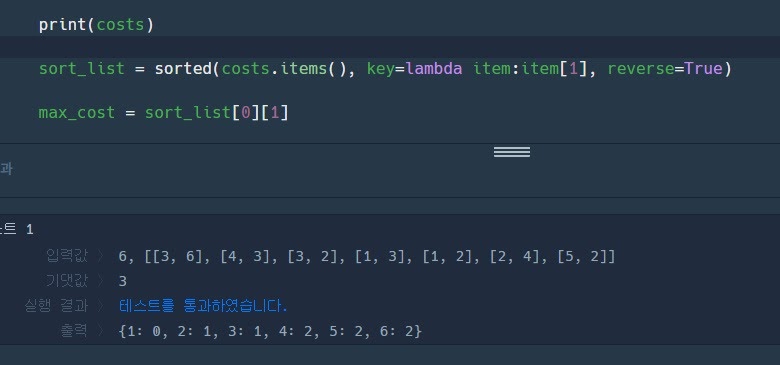 sorted()를 이용해서 cost값을 기준으로 내림차순 정렬한다음에 max cost를 구해 집어넣음