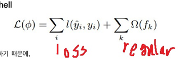 이런 단점을 인식하여 나온 방법이 XGBoost입니다. XGBoost는 실제 값과 예측 값의 차이를 일반적인 loss에 regularization term을 더하여 이것을 줄이는 방향으로 학습을 진행합니다.