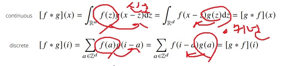참고로 convolution은 변수변환을 시켜서 교환법칙이 성립한다는 것을 보일 수 있다.