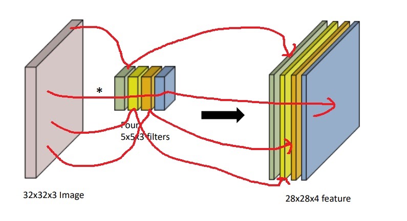 보통 커널은 5*5같이 크기만 제시되는데 input의 channel에 맞춰서 생각하면 된다.