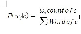 특정 class C=c에 test내 특정 단어 $w_{i}$가 속할 조건부확률을 laplace smoothing을 이용하여 구하면