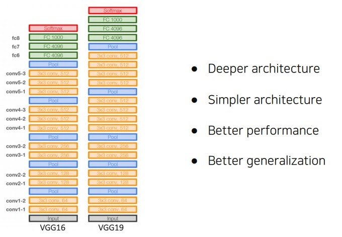 더 깊지만 더 간단하여 기본적인 성능도 AlexNet보다 좋고