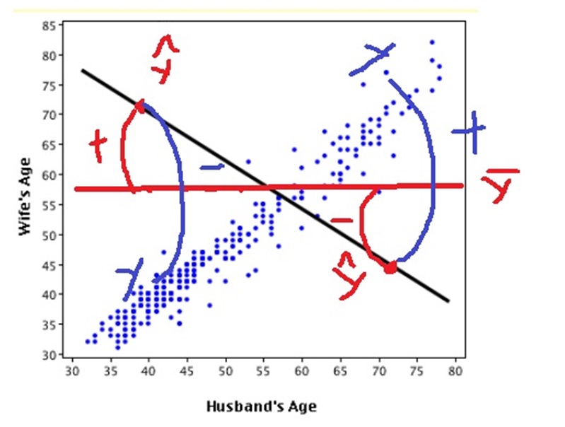 $$(y- \hat{y} )<0, ( \hat{y} - \bar{y} )>0$$이거나 $$(y- \hat{y} )>0,( \hat{y} - \bar{y} )<0$$